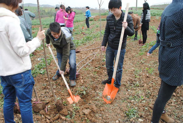 在集團公司人事行政管理中心精心組織,陽晨現代農業園區公司積極配合下,活動有序進行,場面氣氛熱烈。來自各公司、各部門的30多名工作人員參加了本次活動, 大家分工明確,配合默契,刨土埋苗,有模有樣。經過兩個多小時的奮戰,原本空空無也的1000㎡平地瞬間變成了一片“森林”,藍天白云、綠樹紅花之間,滿臉洋溢著成就感的我們,組成了一幅春意盎然的圖畫。