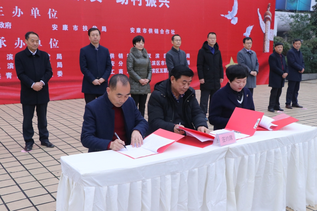 區(qū)委常委、副區(qū)長孫自余主持活動,區(qū)委副書記王懷中代表區(qū)委、區(qū)政府致辭;區(qū)委常委、區(qū)委組織部部長郭正鋒為陜西陽晨牧業(yè)股份有限公司等10個“萬企幫萬村”精準扶貧示范基地(點)授牌;市商務(wù)局副局長陳勇介紹安康(陽晨)生豬產(chǎn)業(yè)助力脫貧攻堅,確保市場供應安全“五進”活動情況;隨后在廣大市民的見證下,漢濱供銷電商公司、天瑞源公司與我公司簽訂了陽晨放心豬肉購銷協(xié)議。